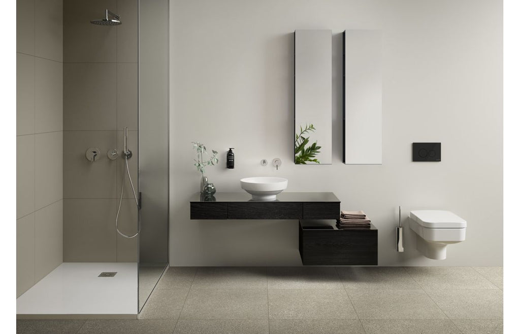 • Origin portrays a delicate minimalism. The collection differentiates from the ordinary with its simple slenderness: Precise edges fine details and noble colours. By challenging the existing perception of faucets and accessories Origin offers an integrated and charming final touch to the bathroom.
